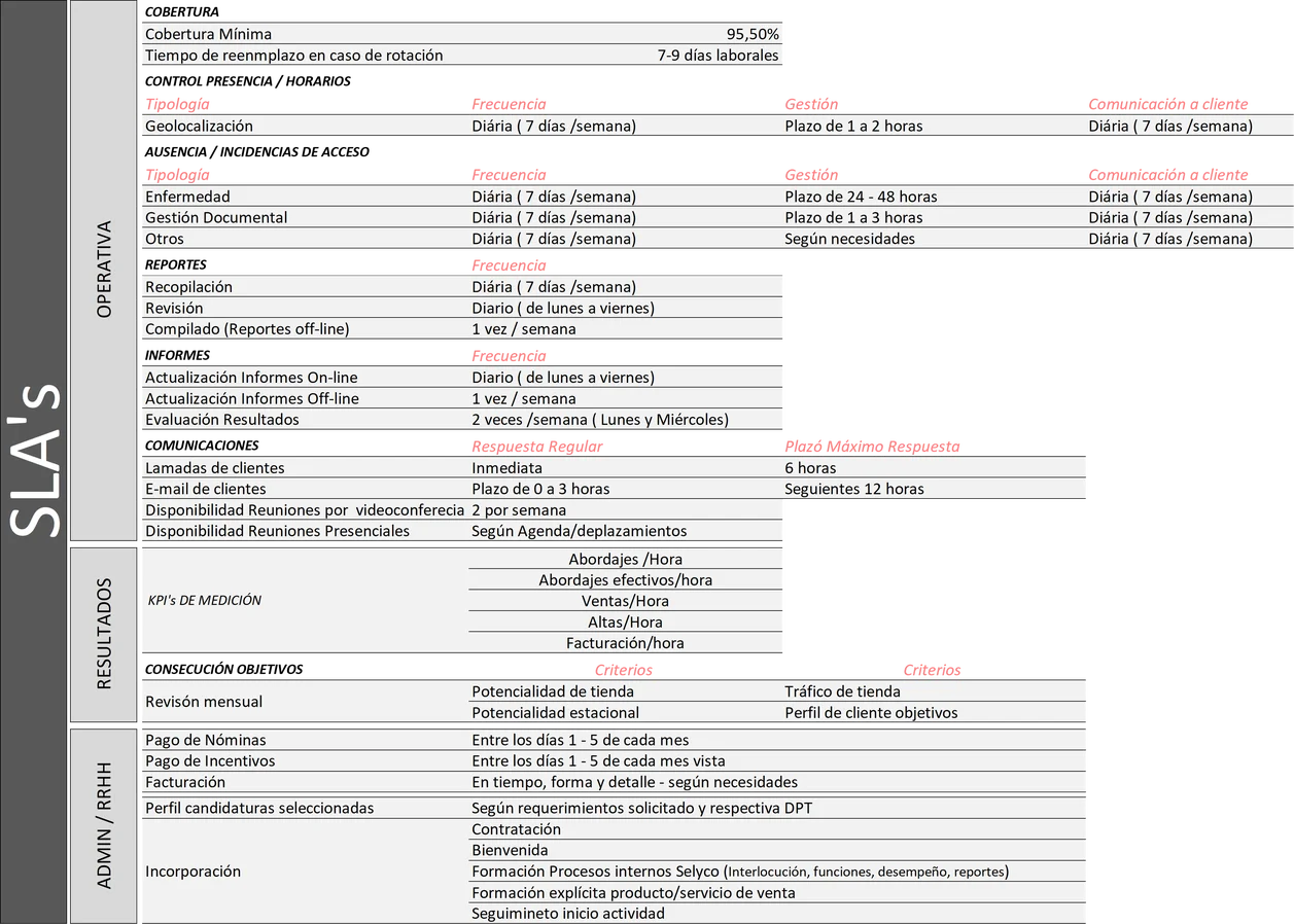 Dentro de los estándares de calidad de servicio de Grupo OT se presentan los SLA’s habituales para un servicio de las características al solicitado.